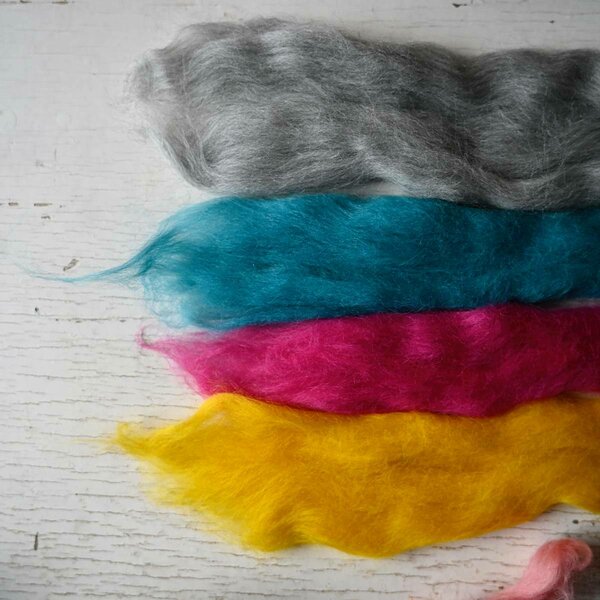 A set of four colours of Corriedale top, 50 grams each. A set of four colours of Corriedale top, 50 grams each.