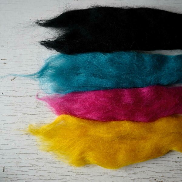 A set of four colours of Corriedale top, 50 grams each. A set of four colours of Corriedale top, 50 grams each.