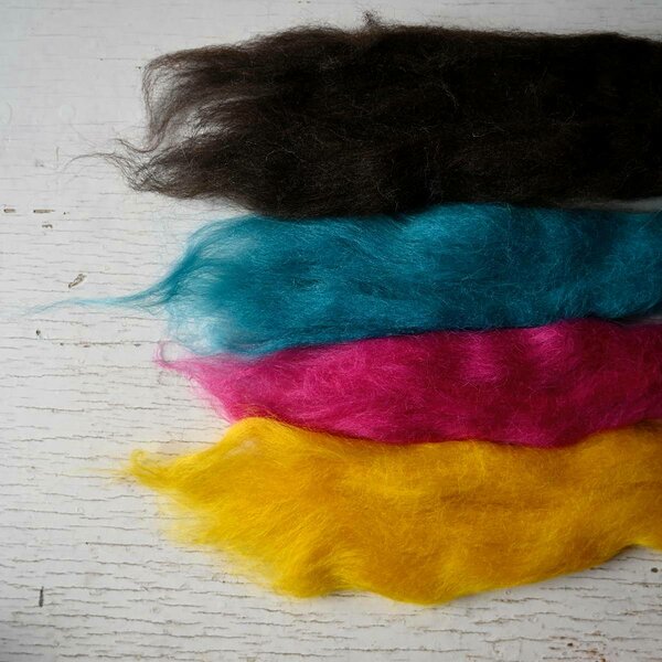 A set of four colours of Corriedale top, 50 grams each. A set of four colours of Corriedale top, 50 grams each.